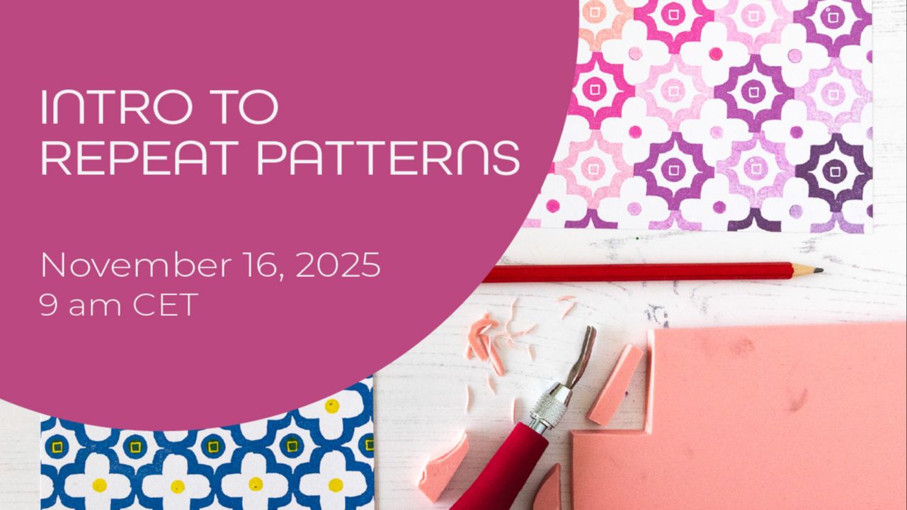 By the end of this workshop series, you'll understand how repeat patterns work and have the skills and knowledge to print repeat patterns from your own hand-carved stamps, as well as the confidence to apply what you have learned to your own projects.
