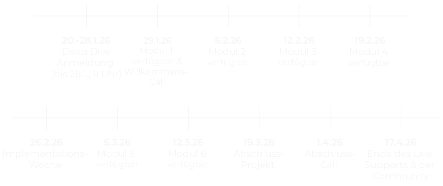 Die Module werden donnerstags veröffentlicht. Du kannst also am Wochenende beginnen und hast eine Woche Zeit bis zur Fragerunde am Mittwoch.